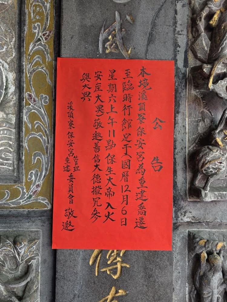 並於國曆12月6日星期六上午11點進行保生大帝入火安座大典。
